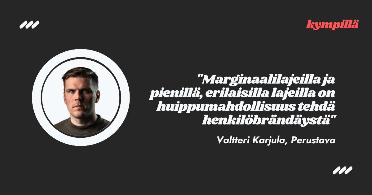 ”Marginaalilajeilla ja pienillä, erilaisilla lajeilla, on huippumahdollisuus tehdä henkilöbrändäystä. Ja sama koskee toki työelämää.”