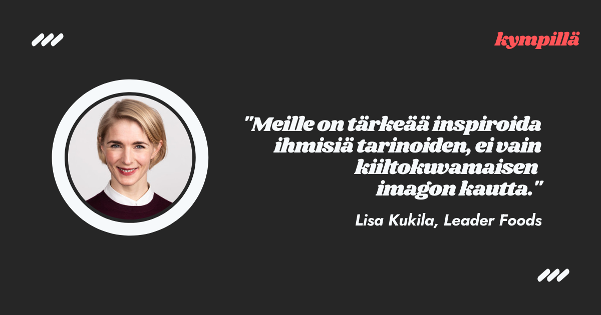 Uuden urheilumarkkinointiin kesittyvän Kympillä-podcastin ensimmäisen jakson vieraana on Leader Foodsin Head of Marketing Lisa Kukila. Hän kertoo, miten 20-vuotias brändi uudistettiin ja kuinka tuotteet tuodaan yleisölle tutuksi yhteistyössä muun muassa Suomen jääkiekkomaajoukkueen ja olympiajoukkueen kanssa.