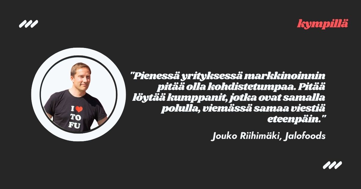 Kympillä-urheilumarkkinointipodcastin kolmannen jakson vieraana on Jalofoodsin toimitusjohtaja Jouko Riihimäki. Hän kertoo, miten etenkin tofustaan tunnettu yritys rakentaa brändiä ja tuo kasvisruoan monipuolisuutta tutuksi erilaisille kohdeyleisöille urheilun avulla.